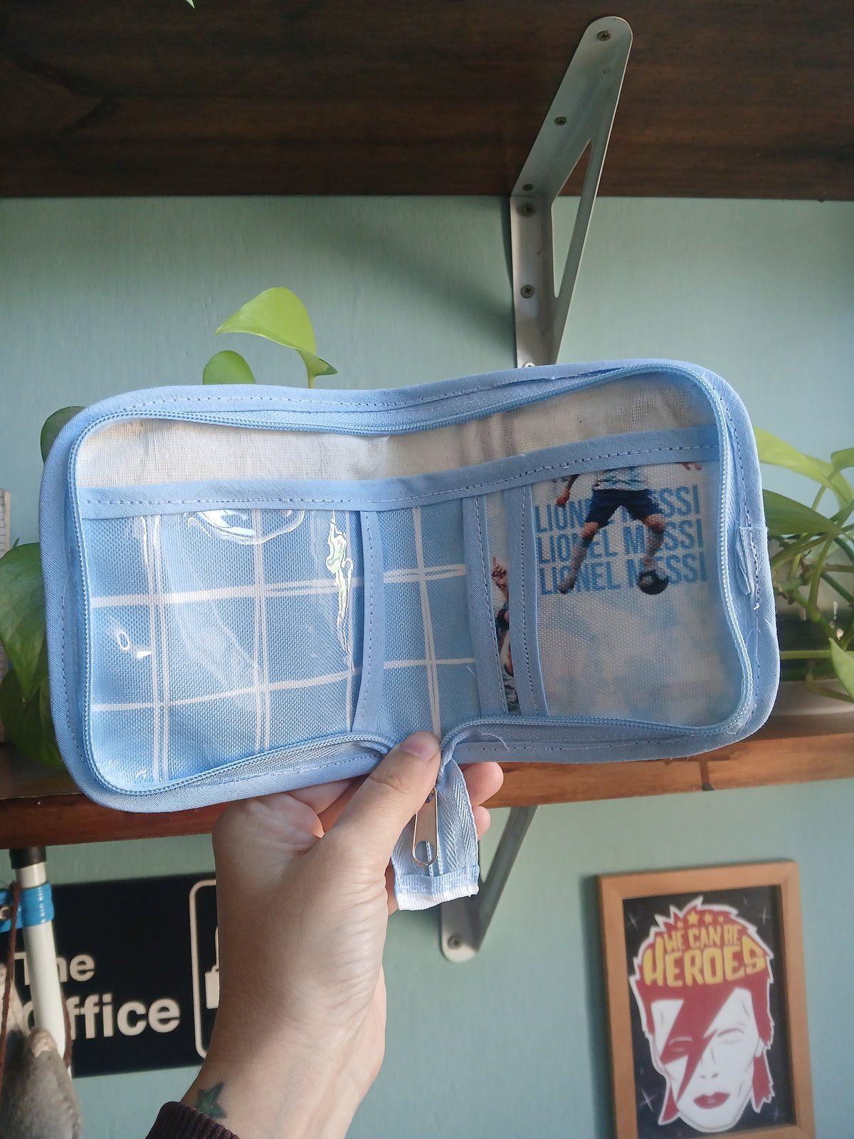 Adentro tiene espacio para billetes, dos espacios para tarjetas y dos bolsillos