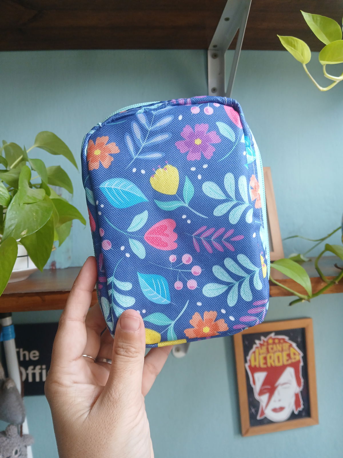 Cartuchera vertical simple flores azules