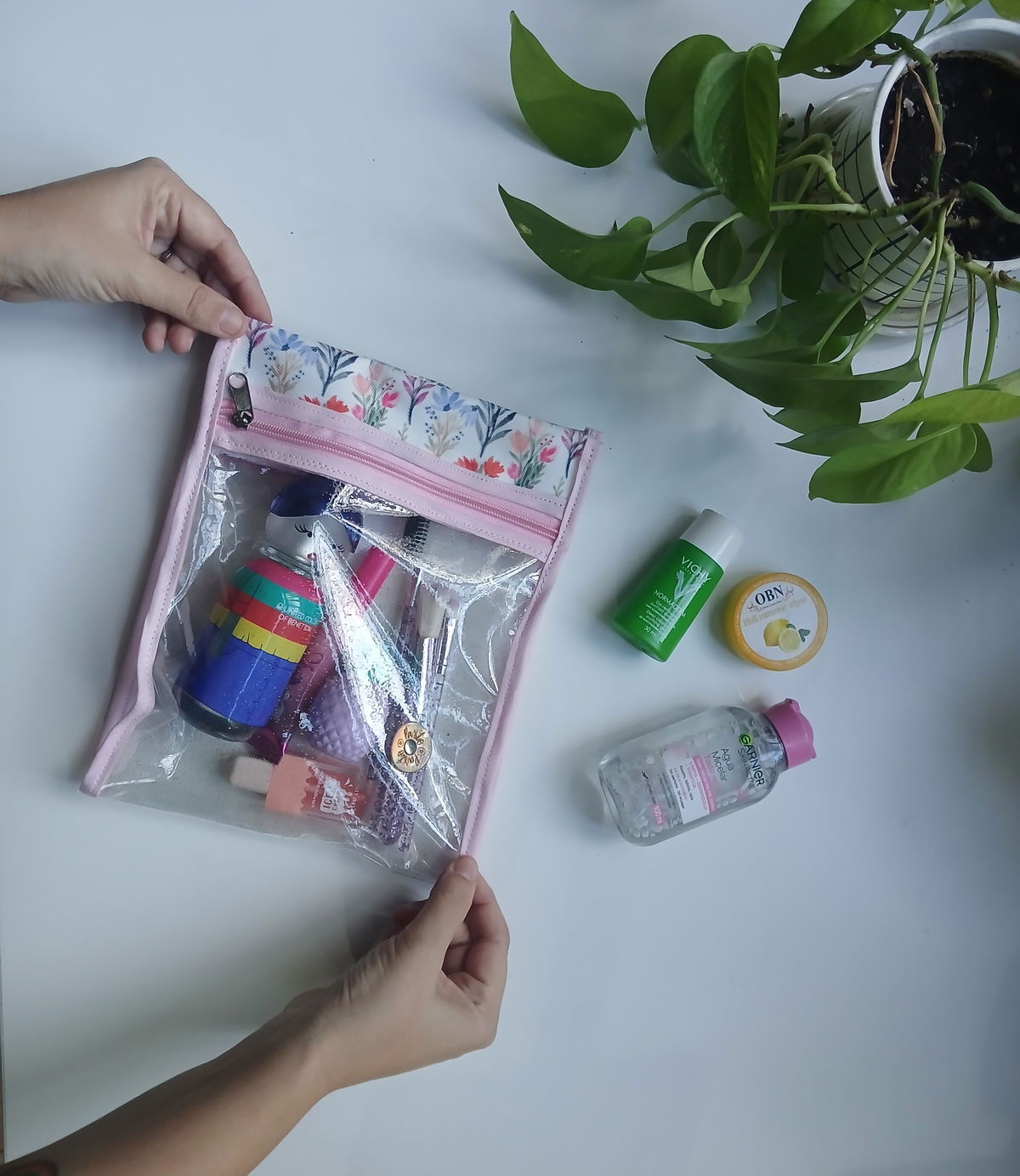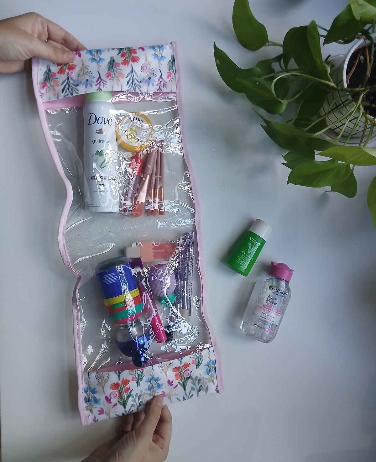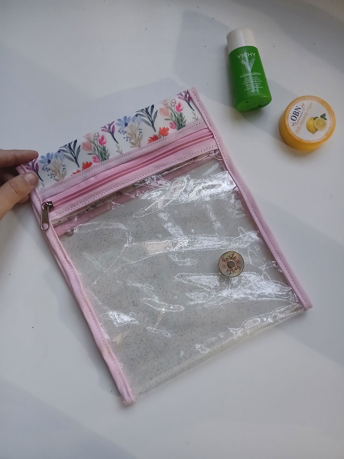 Neceser doble de Nylon transparente, suuper practico, ideal para tener todo organizado y a la vista