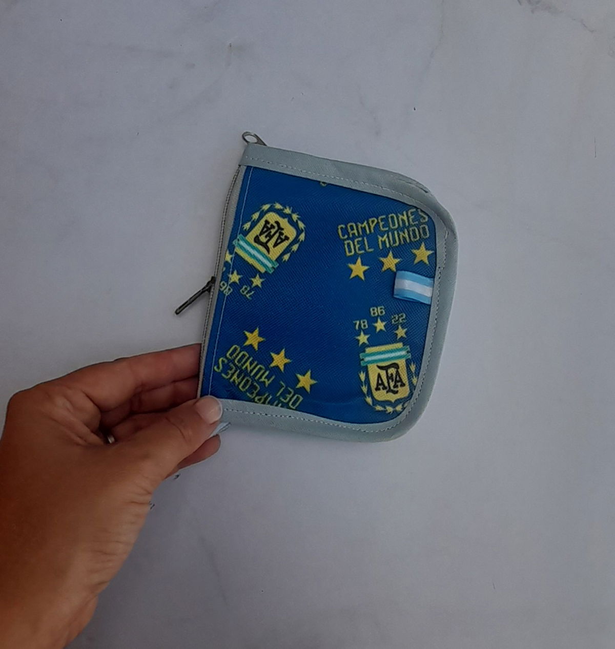 Adentro tiene espacio para billetes, dos espacios para tarjetas y dos bolsillos