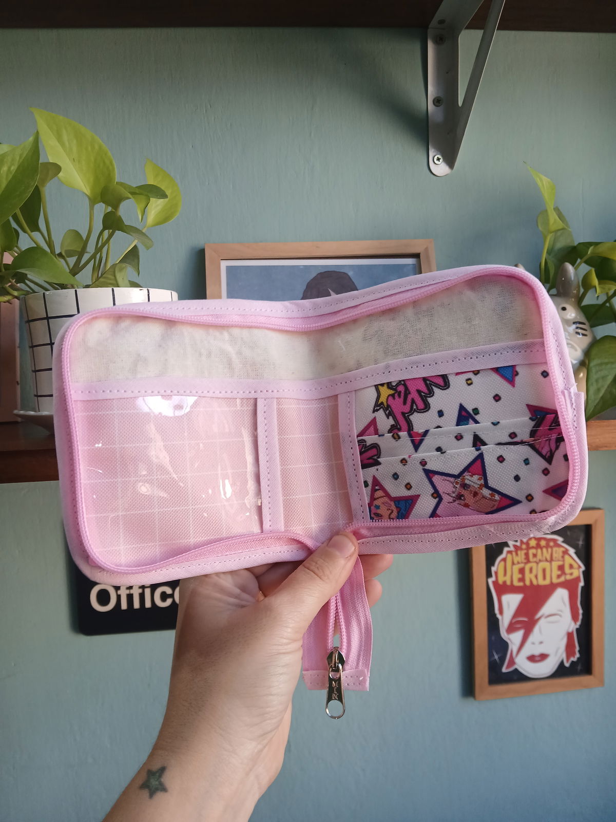 Adentro tiene espacio para billetes, dos espacios para tarjetas y dos bolsillos