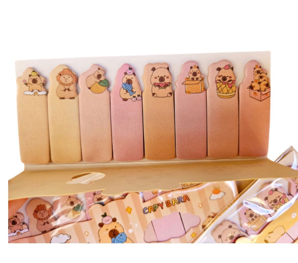 Notas adhesivas capibaras, gatitos, ositos y frutitas