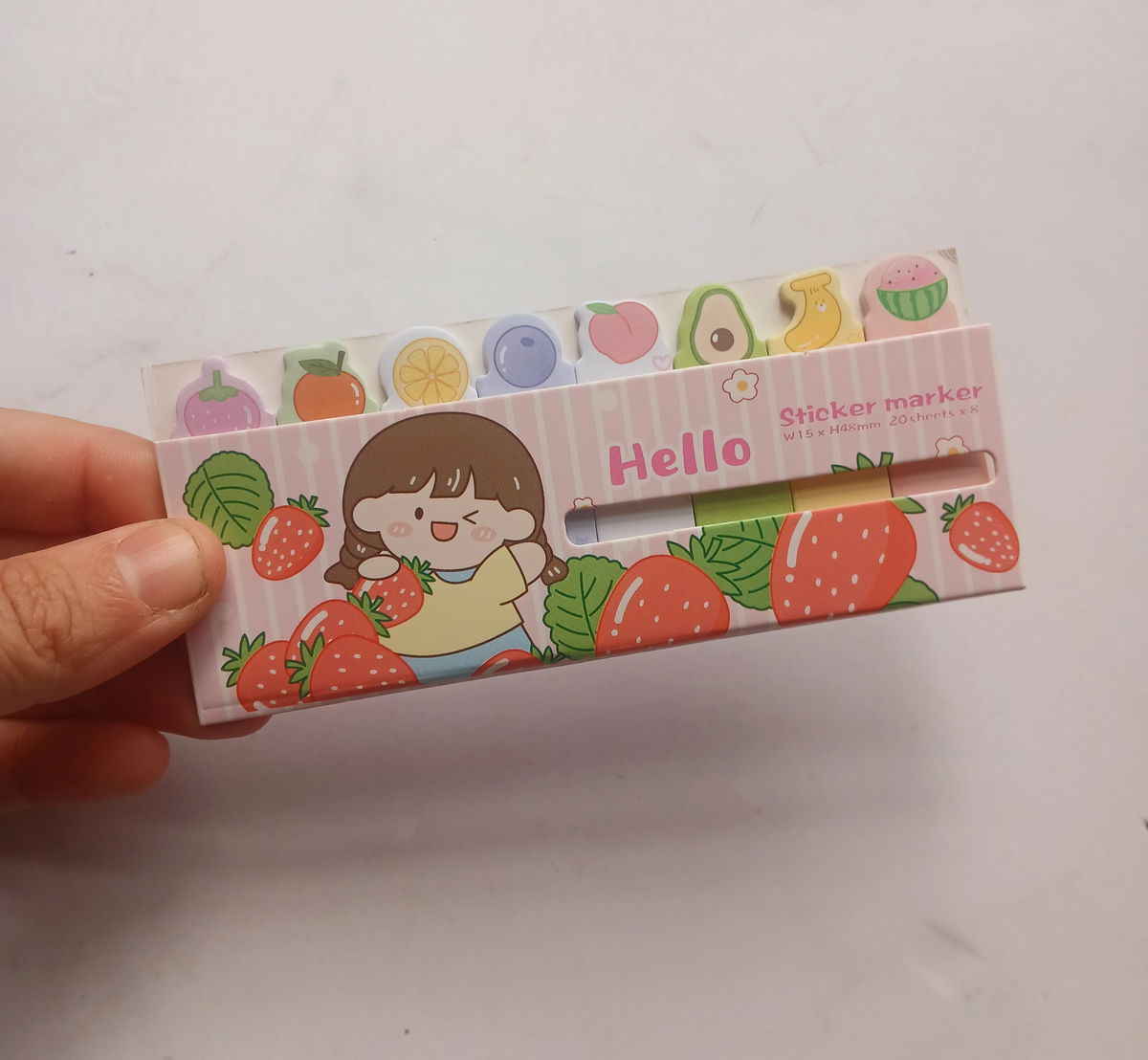 Notas adhesivas gatitos, ositos y frutitas de 8 sticker martes diferente con 20 adhesivos cada uno