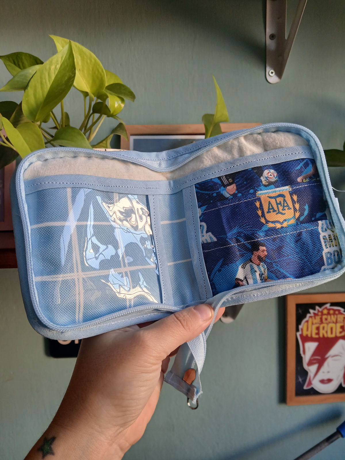 Adentro tiene espacio para billetes, dos espacios para tarjetas y dos bolsillos