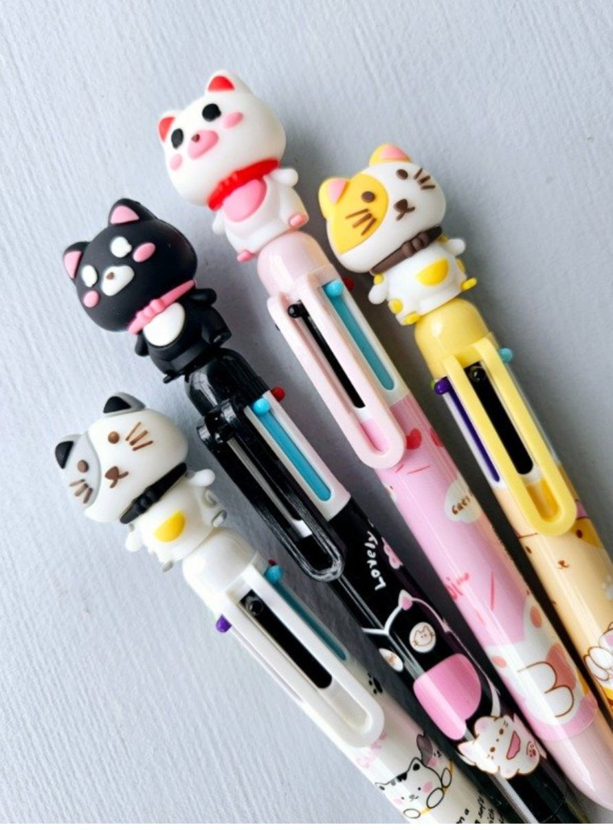Lapicera giratoria 6 colores Gatitos