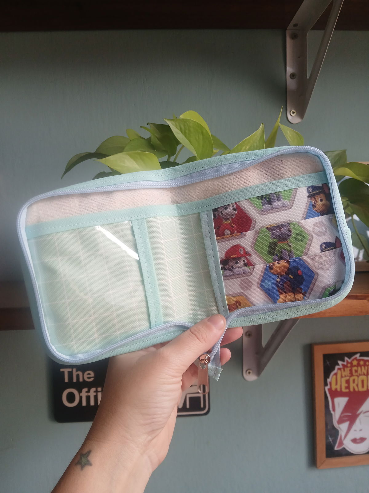 Adentro tiene espacio para billetes, dos espacios para tarjetas y dos bolsillos