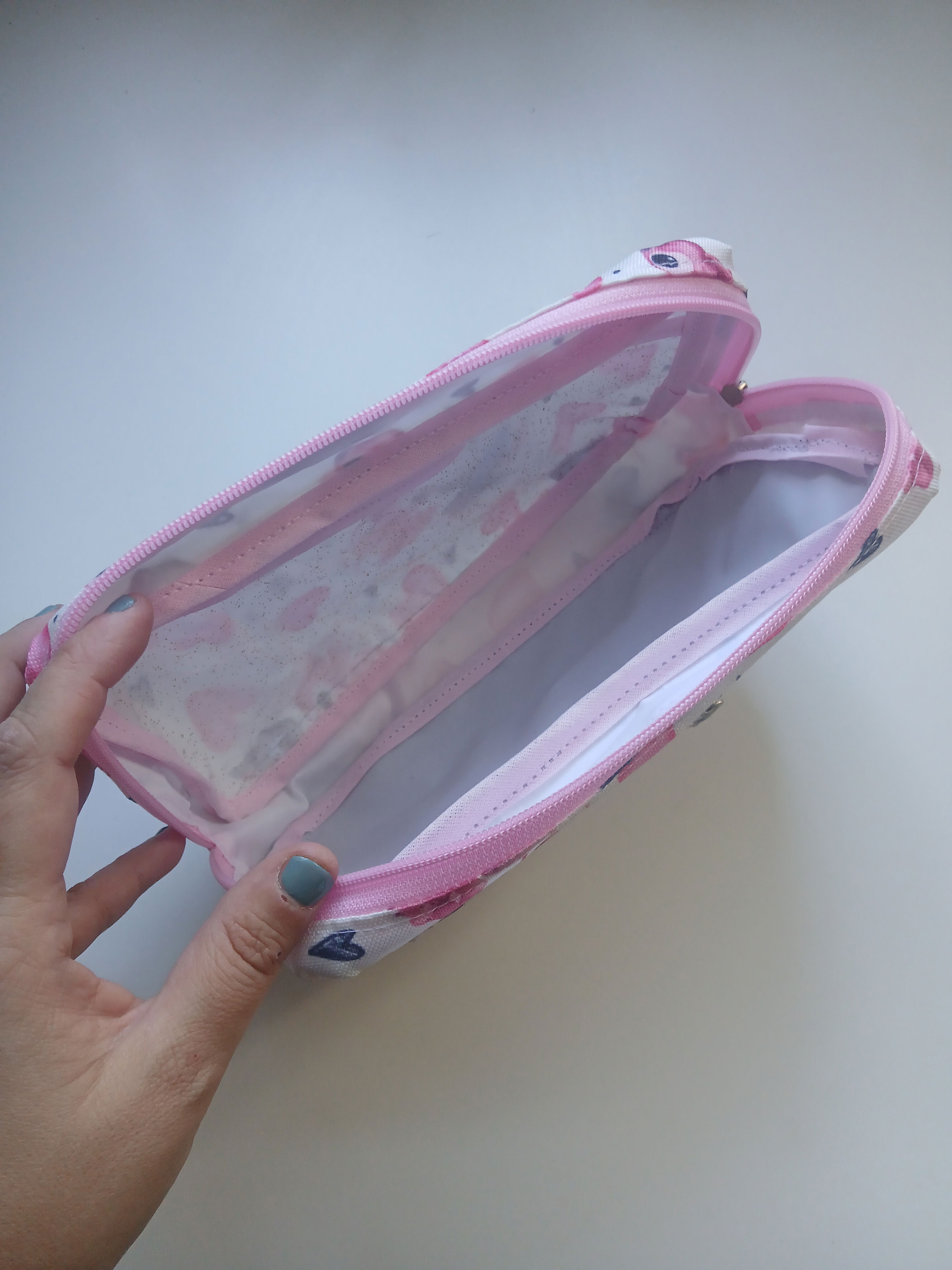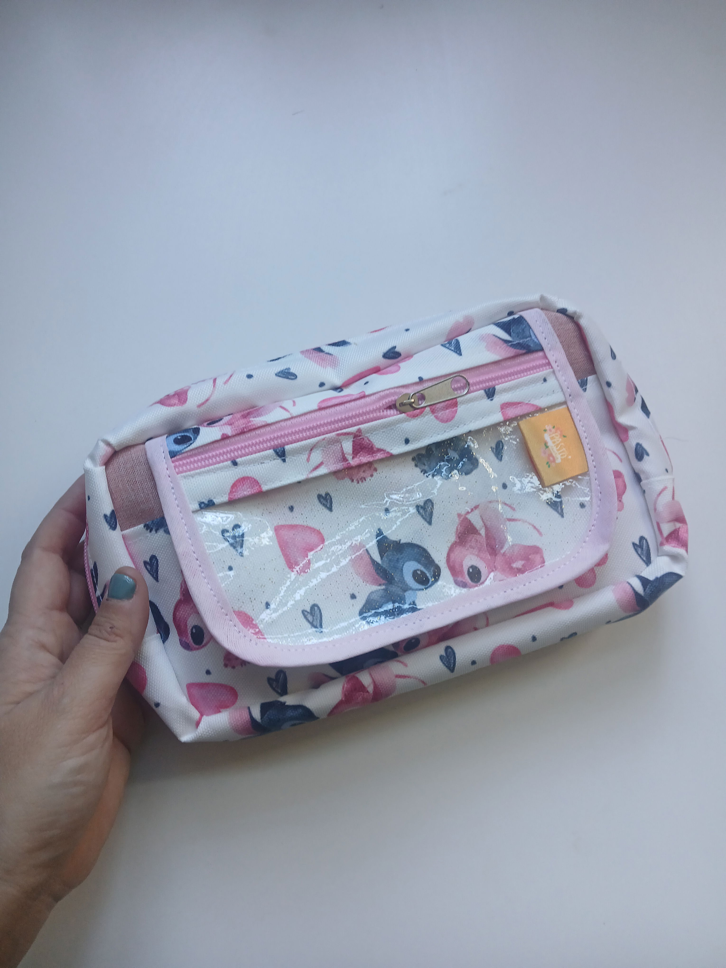 Tiene tapa realizada en nylon cristal y bolsillo con cierre, tiene bolsillo en el frente y otro adentro