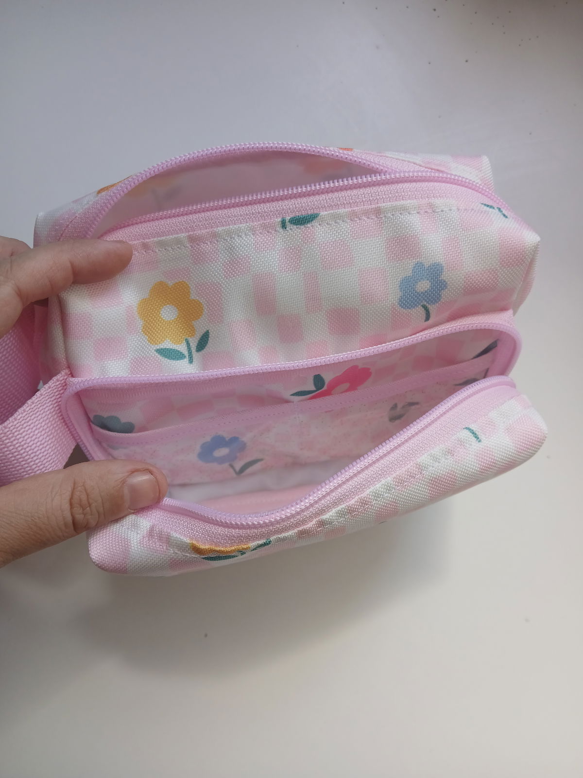 Tiene dos bolsillos laterales amplios y un espacio grande de guardado en el medio