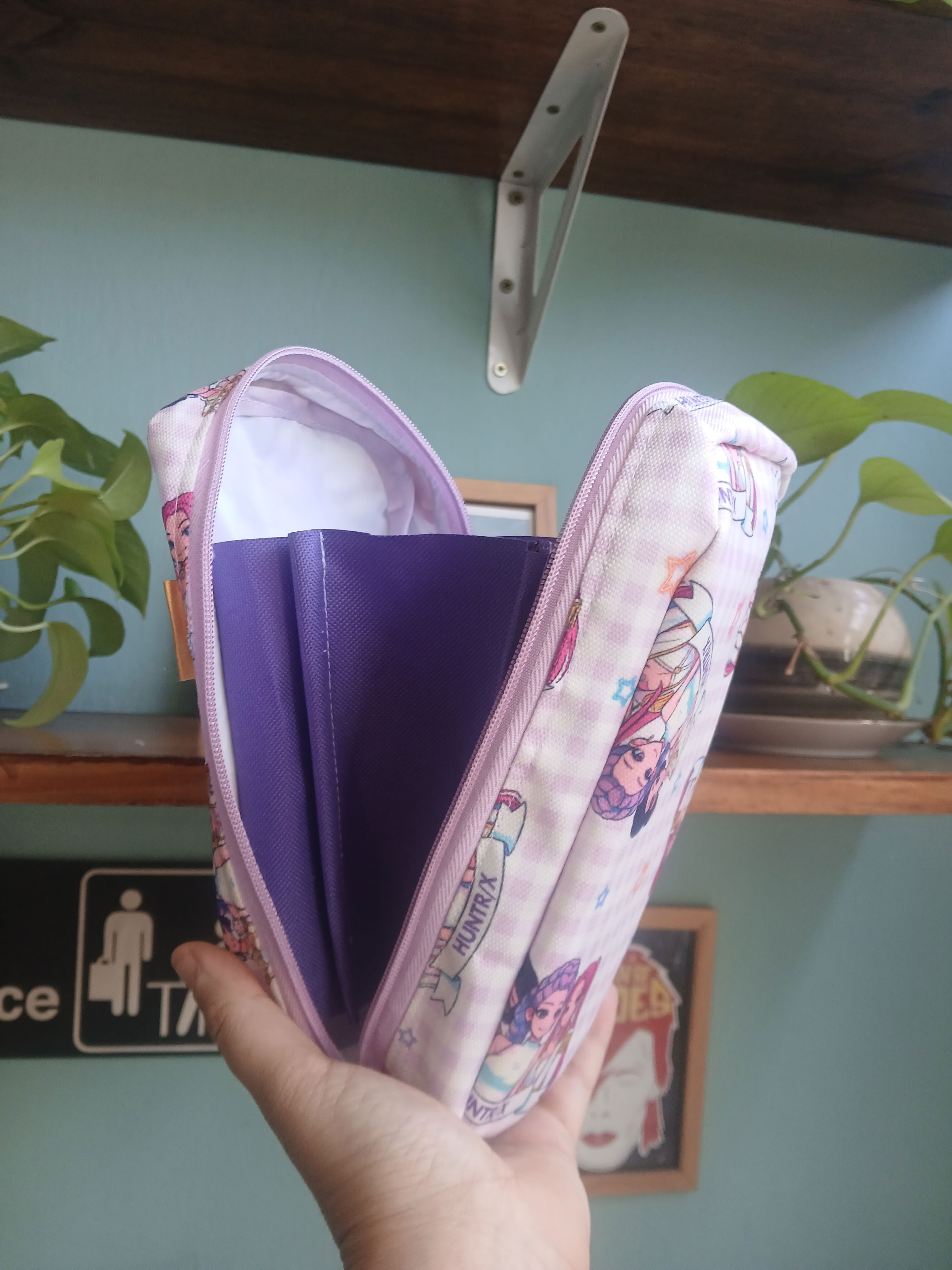 Realizada en cordura exterior, interior forrado en silver impermeable, tres espacios de guardado y tres bolsillos internos