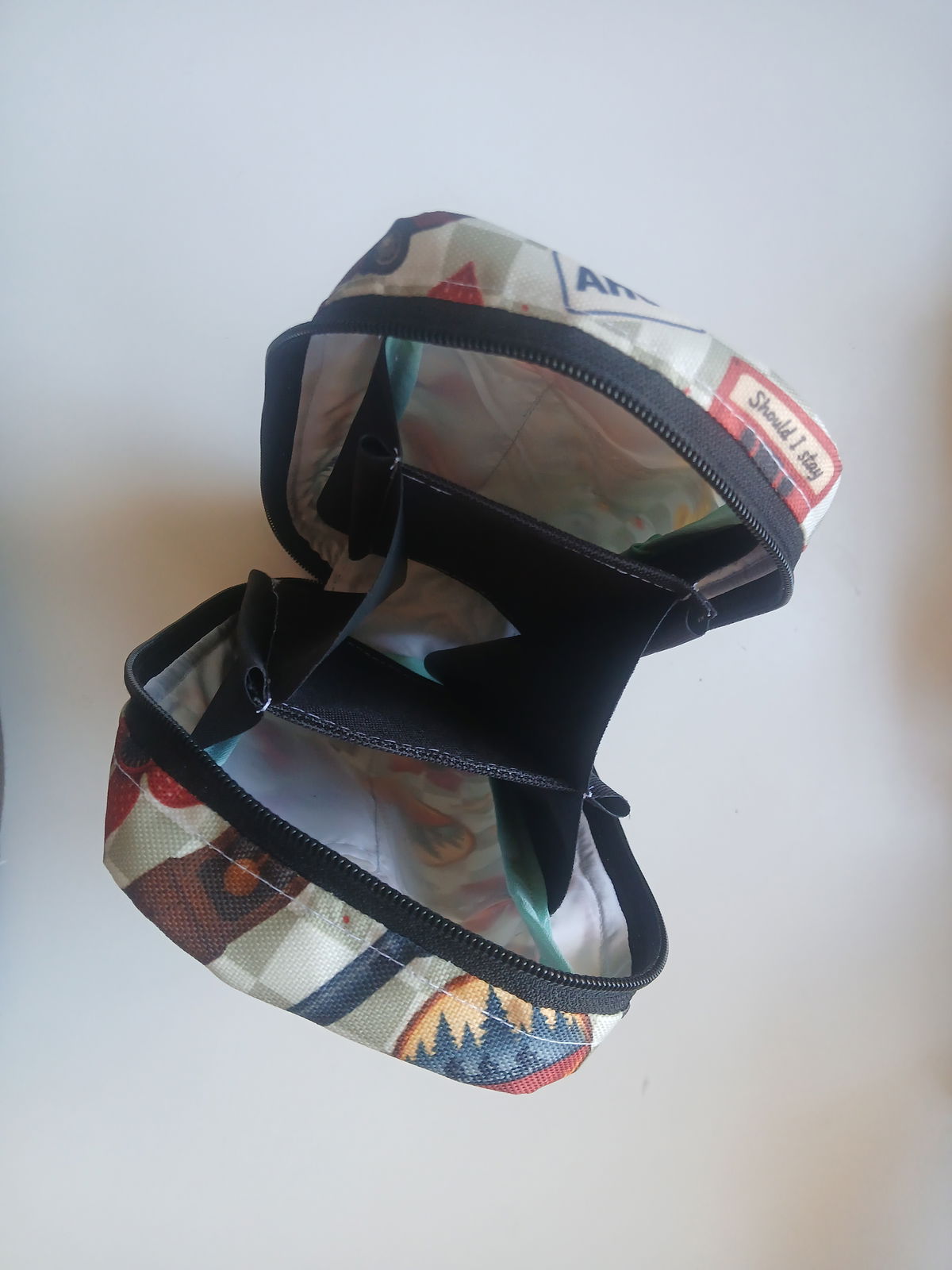 Realizada en cordura exterior, interior forrado en silver impermeable, tres espacios de guardado y tres bolsillos internos