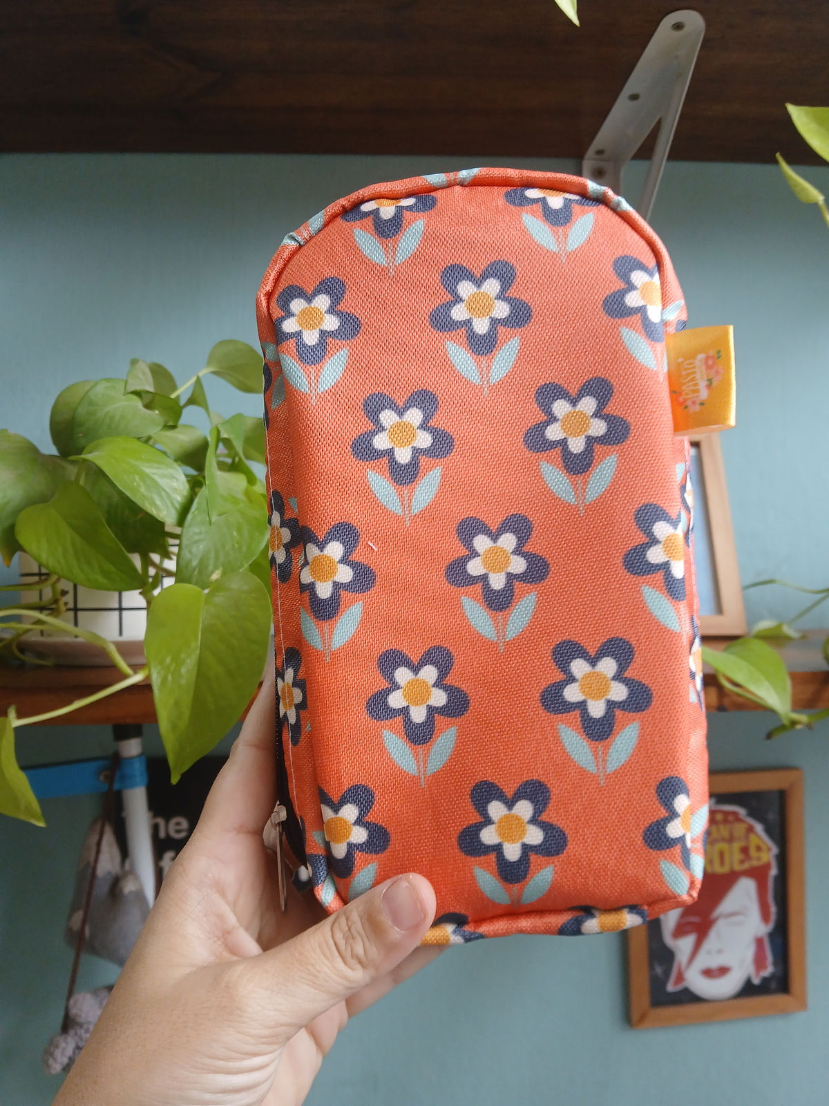 Cartuchera Vertical triple flores greta naranja