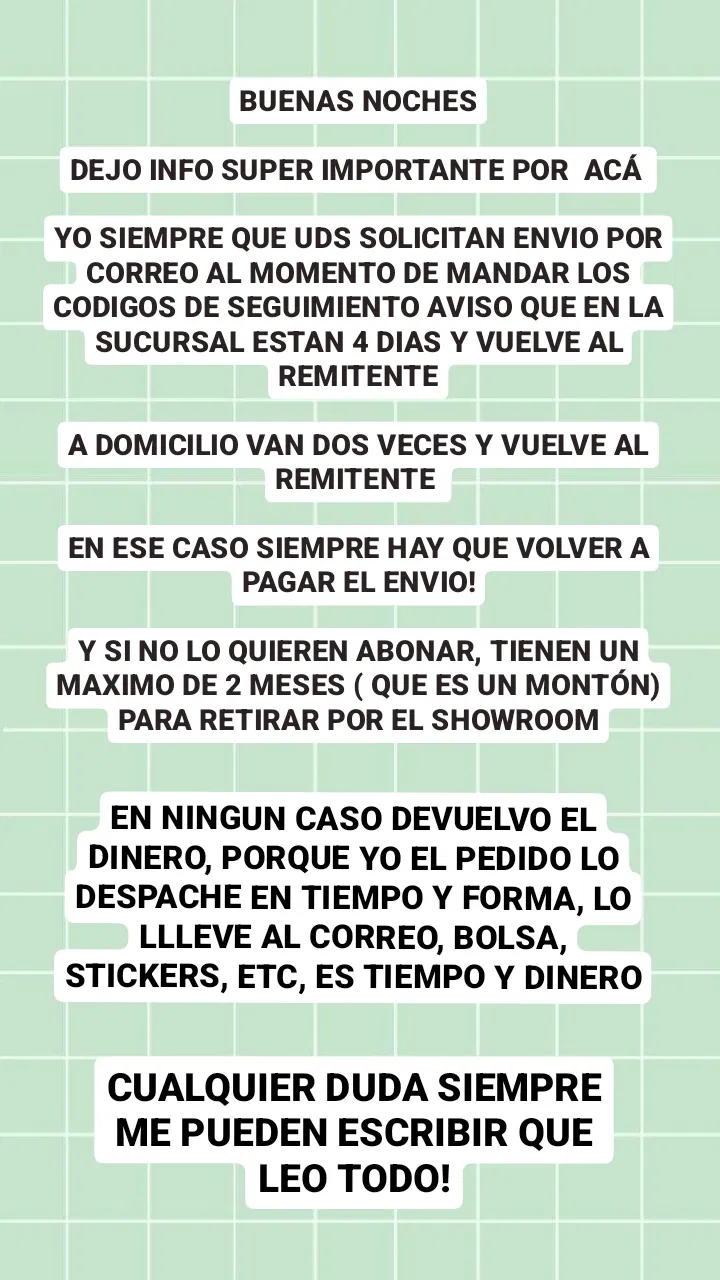 EN NINGÚN CASO DEVUELVO EL DINERO, PORQUE EL PEDIDO SE ENVIO EN TIEMPO Y FORMA, FUI AL CORREO, LAS BOLSAS, STICKERS, ETC, ES TIEMPO Y DINERO